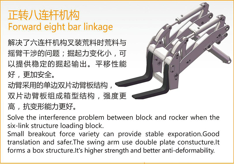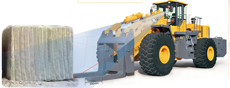 wheel loader WSM976T42 The driver A point is the height of 700mm away from the seat (normal sitting position). When the fork is flat ground,horizontal, we can see the fork and fork tip fork into 300mm way.In the lifting process, the driver can see the tip and fork, it is safe to work.wheel loader WSM976T42